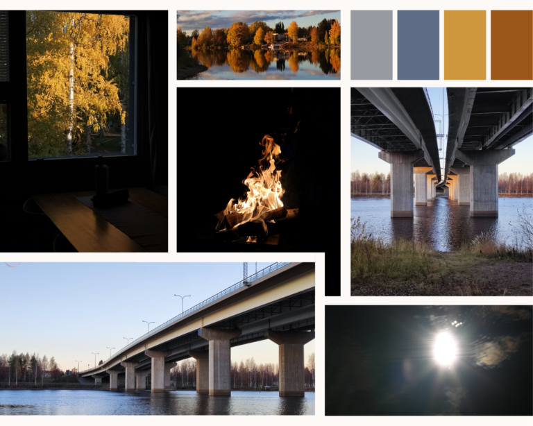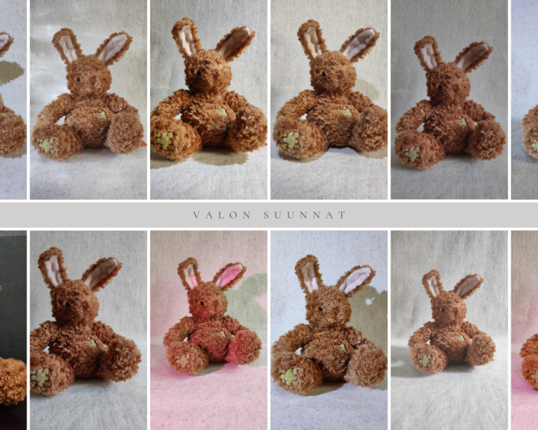 Pari koostetta valotuksen testailusta ja värien harmoniasta.